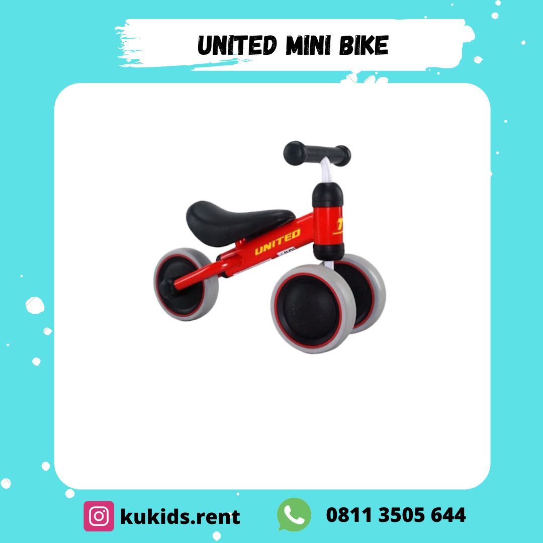 KuKids Rent menyewakan United Mini Push Bike, Sepeda Anak training bike yang didesain untuk balita dengan 2 roda di depan tanpa pedal untuk melatih berjalan anak, menjadikan training bike ini sangatlah aman untuk mencegah terjadinya risiko jatuh saat balita memainkannya.