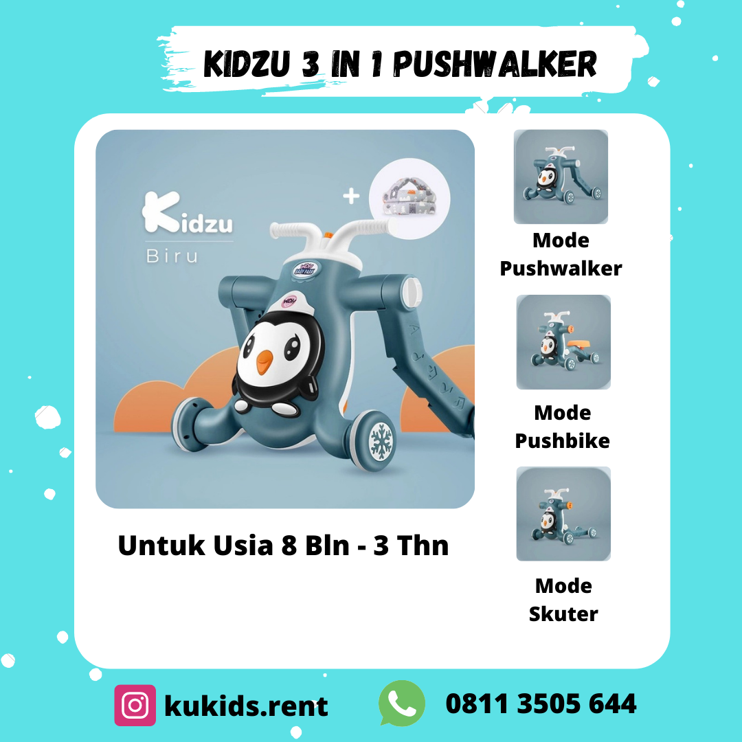 Baby Walker Kidzu, Sepeda Skuter Anak Roda Tiga 3 in1 ini dirancang untuk keamanan si kecil, dengan roda anti selip dengan desain berlekuk dan dilengkapi tombol putar pengatur kecepatan. Tak lupa terdapat tambahan fitur musik dan cahaya yang berasal dari lampu warna warni dalam desain pinguin agar si kecil semakin aktif dan bersemangat dalam berlatih dan bermain.
