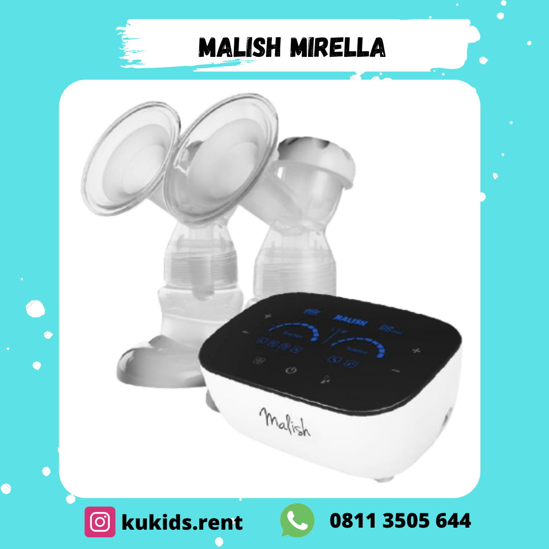 Malish Breastpump Electric Mirella Plus Pompa ASI merupakan pompa ASI Double Pump Rechargable dan termasuk jenis pompa ASI Hospital Grade dengan Closed System (sistem tertutup). Dimana ASI perah tidak akan mungkin masuk kedalam motor unit karena dipisahkan oleh diafragma. Pompa ASI ini bisa digunakan oleh multi user (lebih dari satu orang). Kelebihan lainnya adalah ukurannya yang relatif tidak besar (ukuran pas satu genggam tangan) sehingga ibu tidak akan kesulitan untuk dibawa bepergian (berpindah-pindah tempat). Mirella Plus memiliki tombol Play/Pause untuk menghentikan dan memulai kembali sesi pumping. Memiliki fitur 2 in 1 (Memijat dan Memerah secara bergantian dengan durasi yang cepat). Memijat sebentar lalu langsung memerah dengan berulang-ulang selama durasi pumping. Memiliki alarm clock yang dapat diatur untuk pengingat sesi pumping selanjutnya. Dapat diatur sesuai dengan jadwal (Settingan perjam). Contoh setting selama 1 Jam, setelah 1 Jam alarm akan berbunyi. Dan memiliki corong tambahan yang lebih kecil jika corong bawaan tidak cocok. Corong tambahan dengan ukuran 21mm.