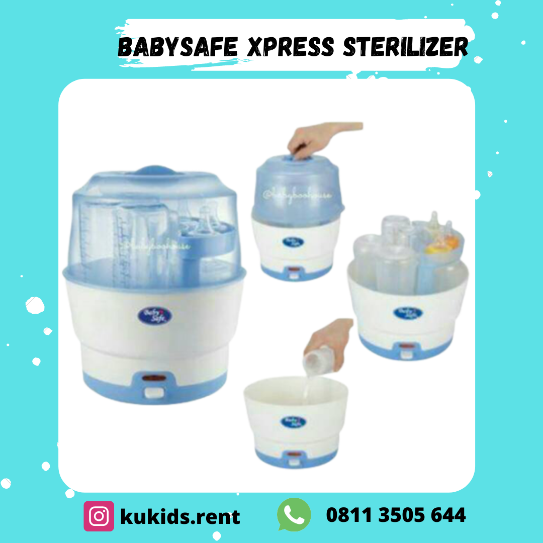 BabySafe 6-Bottles Express Steam Sterilizer adalah mesin khusus sterilizer yang bekerja dengan sangat cepat dan dapat membasmi semua jenis bakteri rumah tangga. Dengan adanya lampu indikator dan Thermostatic Control (pengontrol suhu), alat ini membantu menjamin proses sterilisasi agar tetap terjaga dalam suhu yang sesuai standar. Mesin pengontrol suhu akan bekerja otomotis dimana mesin akan mati dengan sendirinya bila terjadi overheat (pemanasan berlebih) walaupun prosesnya belum selesai. Oleh karena itu, para ibu tidak perlu ragu lagi akan kebersihan dan keamanan dari botol susu dan perlengkapan makan yang akan digunakan oleh si kecil.
