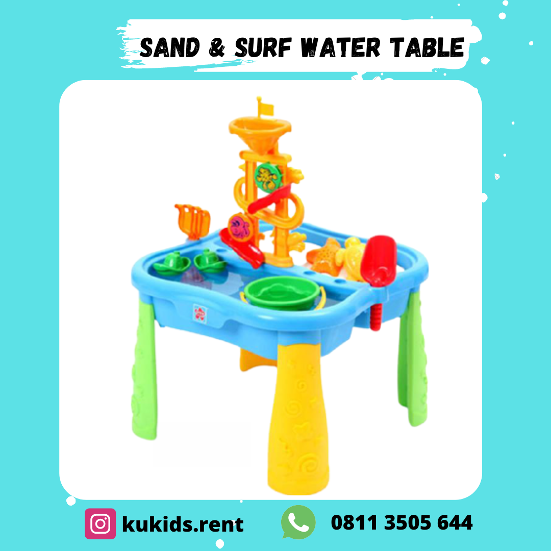 - Meja pasir dengan 2 sisi untuk permainan air dan pasir.